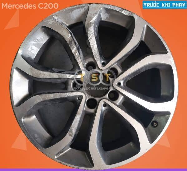 Phục hồi kết hợp phay lazang Mercedes C200 giúp làm mới hoàn toàn diện mạo mâm xe theo chuẩn thẩm mỹ cao cấp của Mercedes.