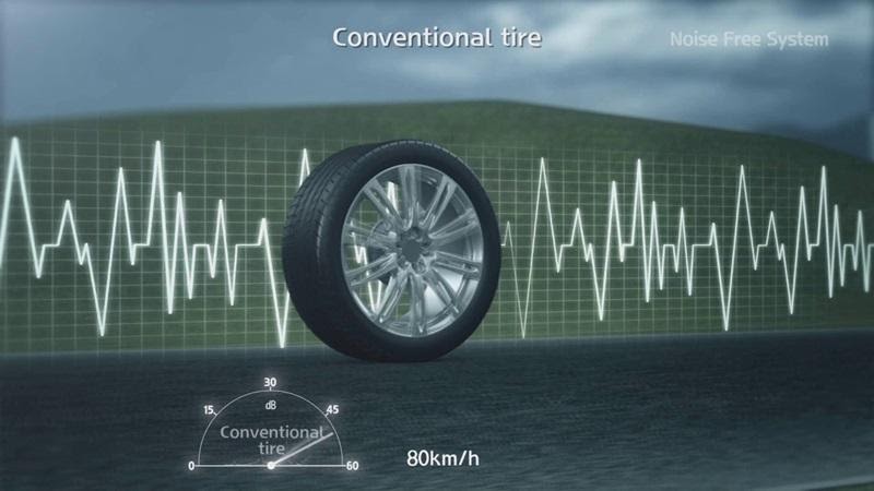 - Lốp chống ồn có lớp mút ở bên trong giúp giảm rung, triệt tiêu âm thanh phát sinh từ rãnh lốp và hạn chế tiếng vọng vào khoang cabin.