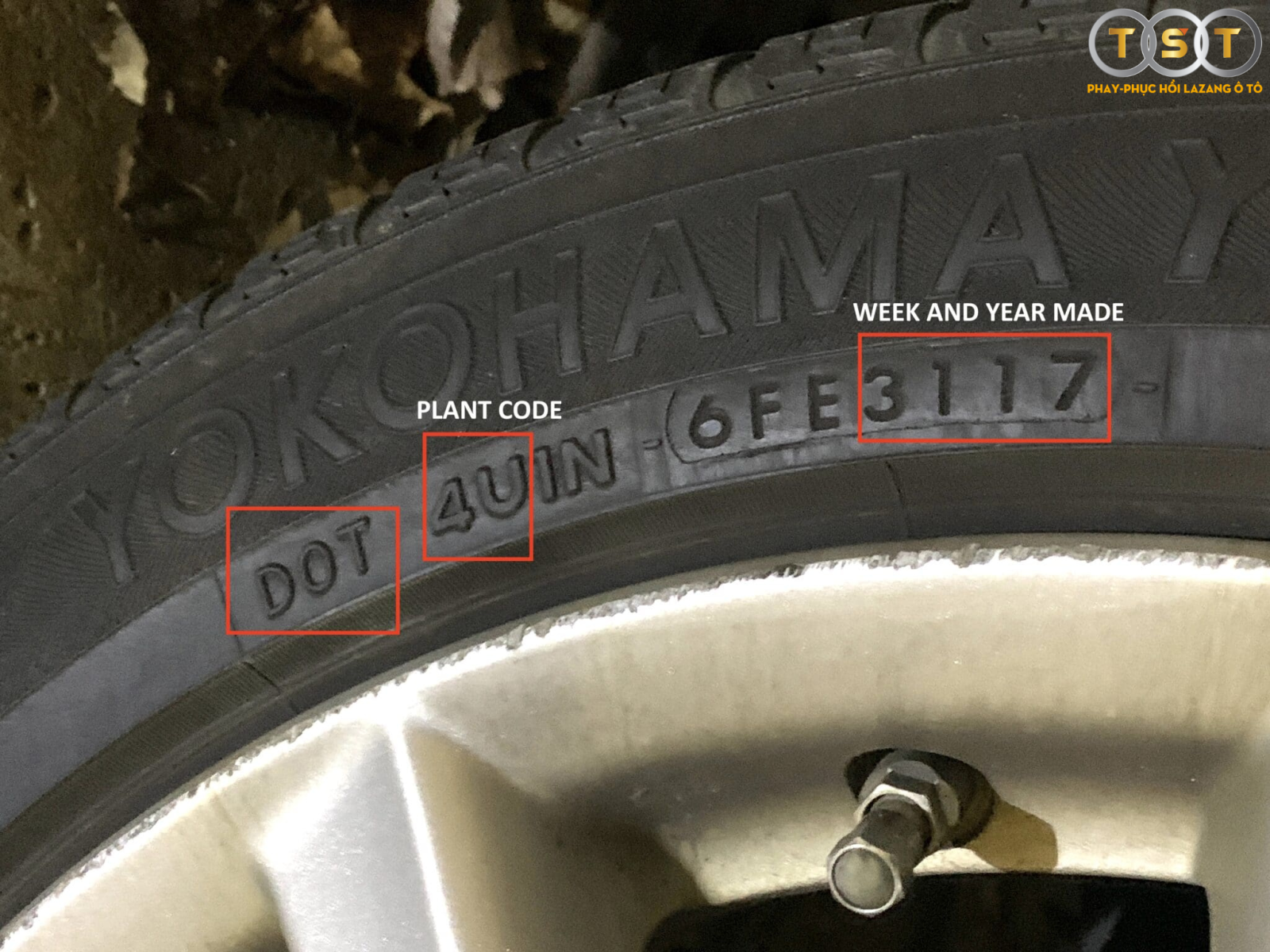 Trên lốp sản xuất sau năm 2000, ký hiệu DOT kèm 4 số cuối cho biết thời điểm sản xuất: