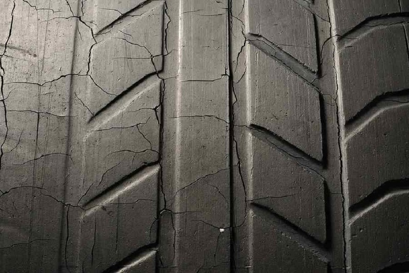 Các vết nứt xuất hiện cho thấy cao su trong lốp xe bắt đầu bị hỏng.