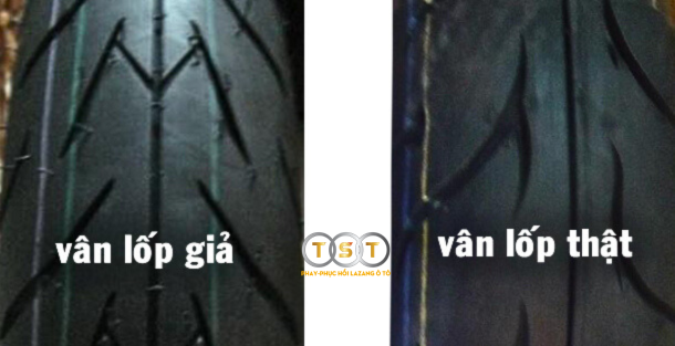 Lốp thật có ký hiệu “T.W.I” rõ, cách mép lốp khoảng 50mm. Lốp giả thường thiếu hoặc in sai vị trí.