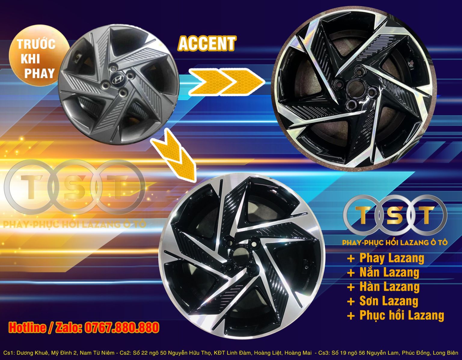 Nhu cầu phay lazang Hyundai Accent, sơn lazang Hyundai, xử lý xước mép lazang Accent ngày càng tăng khi xe chạy dịch vụ cường độ cao. Việc làm đẹp lazang giúp xe giữ độ mới, tăng giá trị khi bán lại.