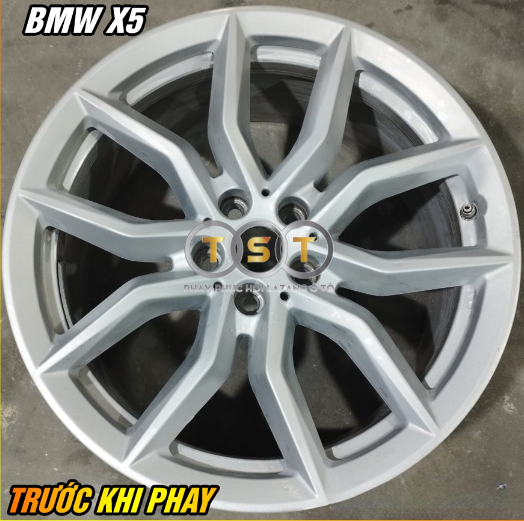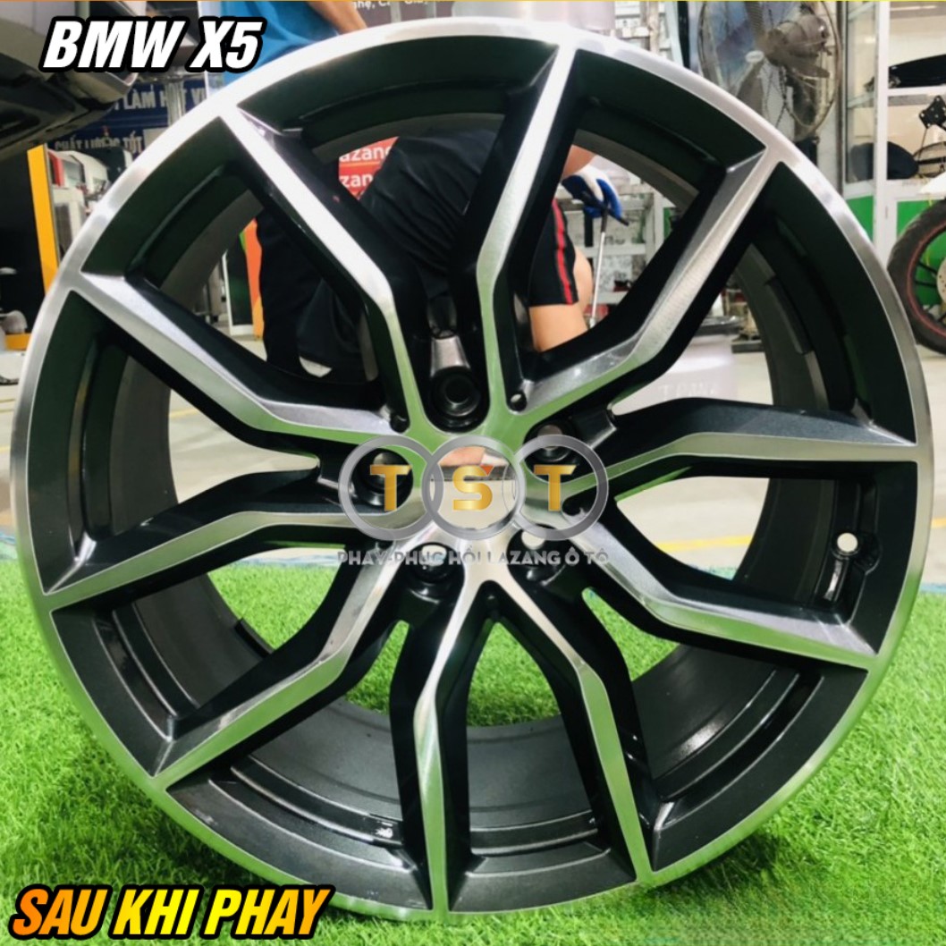 Mâm xe BMW X5 trước và sau khi sử dụng dịch vụ phay lazang.
