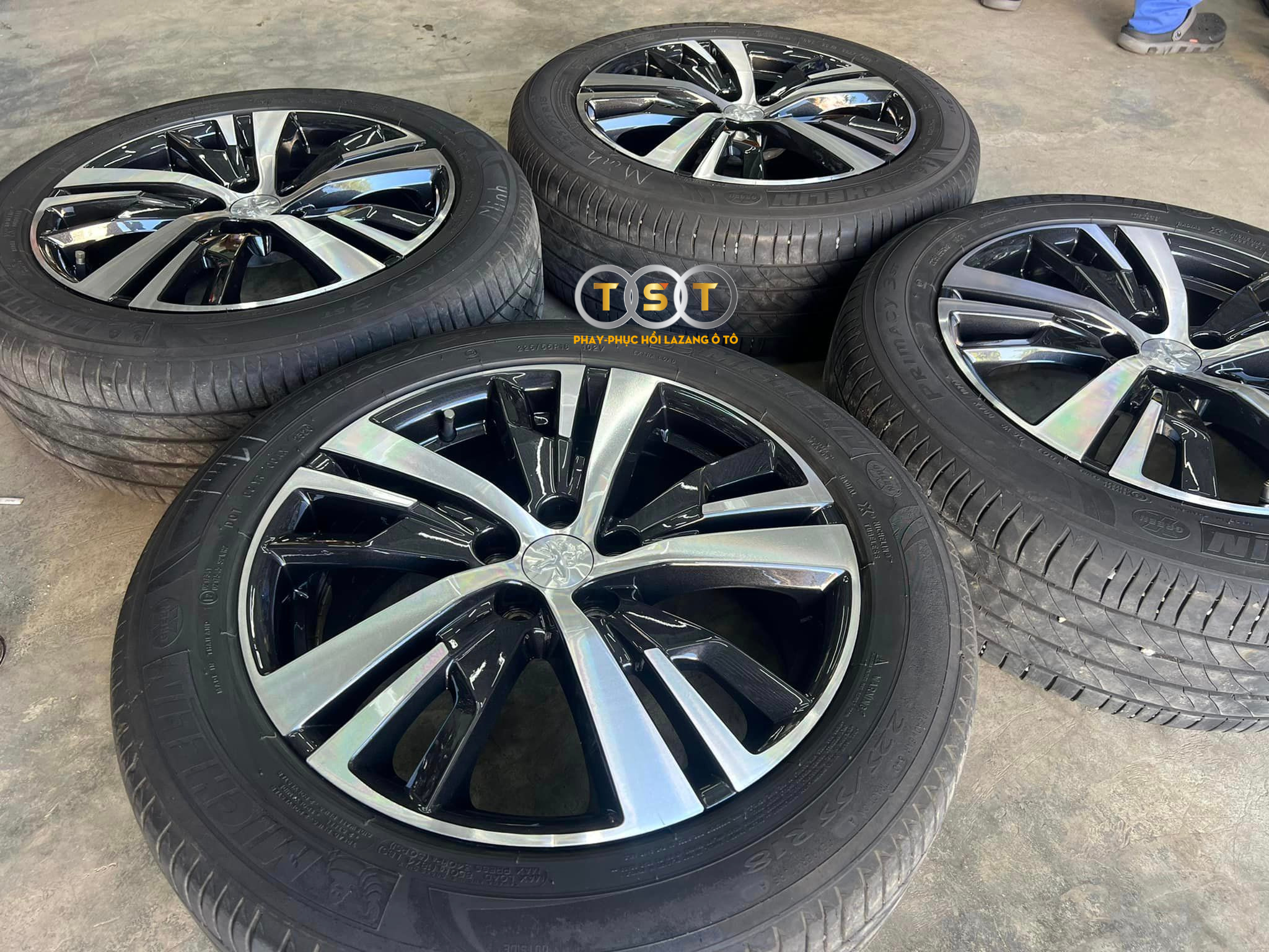 Sơn đen kết hợp phay lazang cho Peugeot 3008GT và 5008GT mang đến diện mạo mạnh mẽ, hiện đại và đậm chất thể thao. Nền sơn đen bóng làm nổi bật các đường phay CNC sắc nét, tạo hiệu ứng tương phản cao và tăng chiều sâu cho mâm xe. Quy trình thi công chuẩn kỹ thuật giúp bề mặt lazang bền màu, hạn chế trầy xước và chống oxy hóa hiệu quả, đồng thời tôn lên phong cách cao cấp đặc trưng của các phiên bản GT.