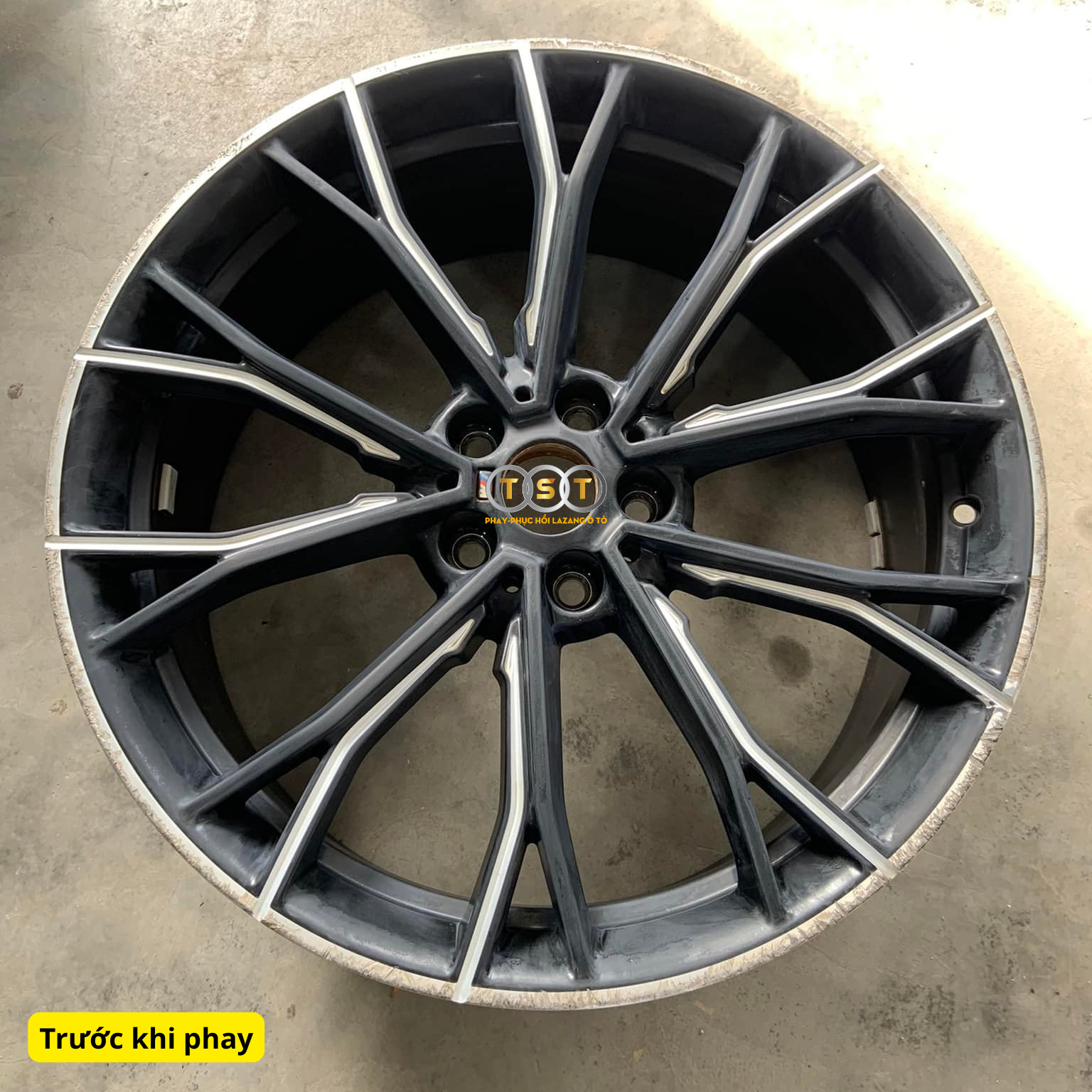 Dịch vụ sơn đen bóng và phay lazang BMW X5 mang đến diện mạo thể thao, sang trọng và đẳng cấp cho xe. Bề mặt lazang được xử lý kỹ lưỡng, sơn phủ tĩnh điện đen bóng cao cấp kết hợp phay CNC sắc nét giúp tăng độ tương phản và độ sáng kim loại. Công nghệ hiện đại giúp mâm xe bền màu, chống oxy hóa, hạn chế trầy xước và dễ vệ sinh. Đây là giải pháp hoàn hảo để nâng cấp ngoại hình và giá trị thẩm mỹ cho BMW X5.