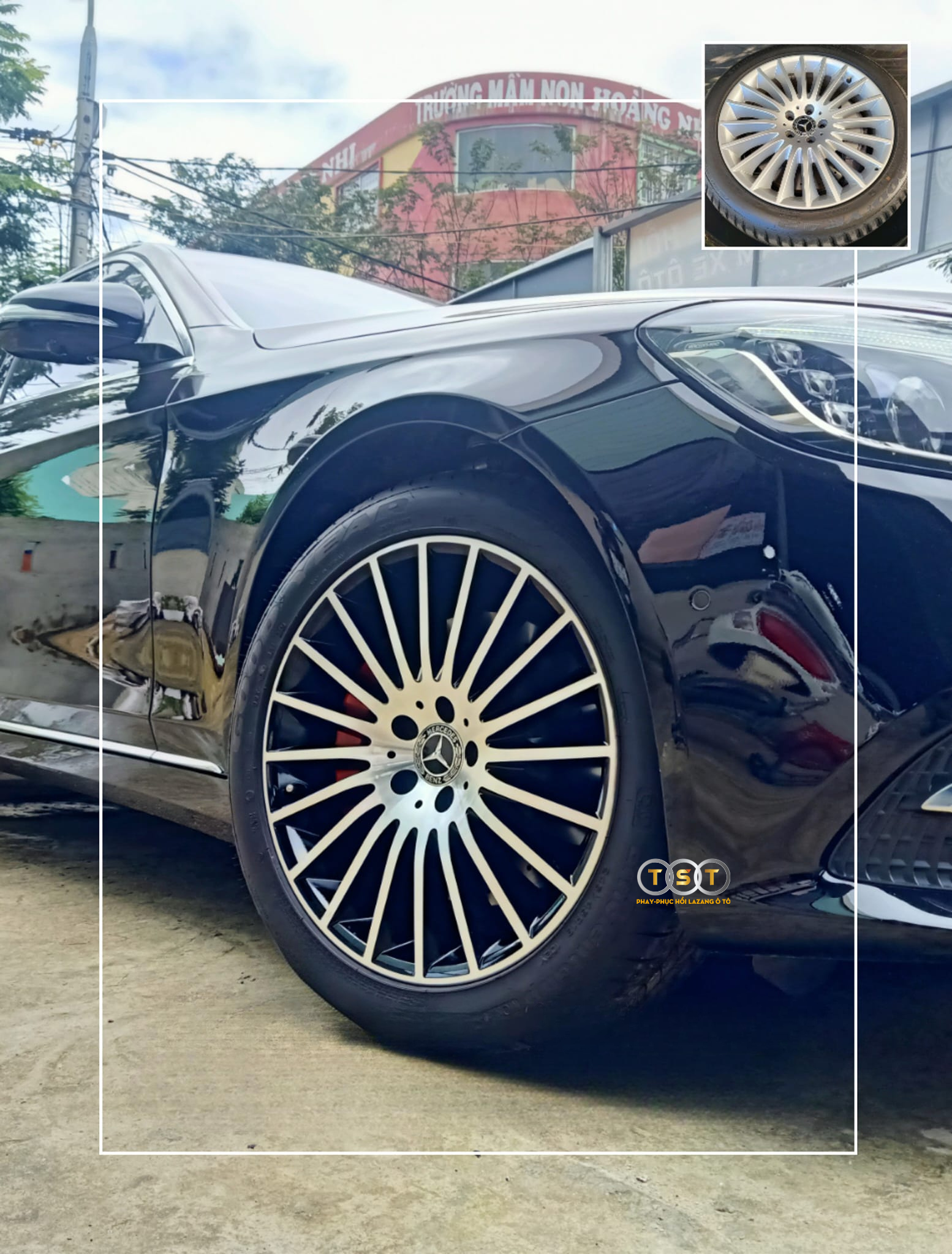 Tại Trung tâm Lazang ô tô TST Hà Nội, dịch vụ sơn - phay lazang Mercedes E400 được thực hiện bằng công nghệ hiện đại, đảm bảo độ chính xác và thẩm mỹ tối đa. Bề mặt mâm được xử lý mịn, phay sắc nét và phủ lớp sơn đen bóng hoặc mờ tùy chọn. Giải pháp này giúp khôi phục vẻ đẹp sang trọng, mạnh mẽ và đẳng cấp cho chiếc E400 sau thời gian dài sử dụng.