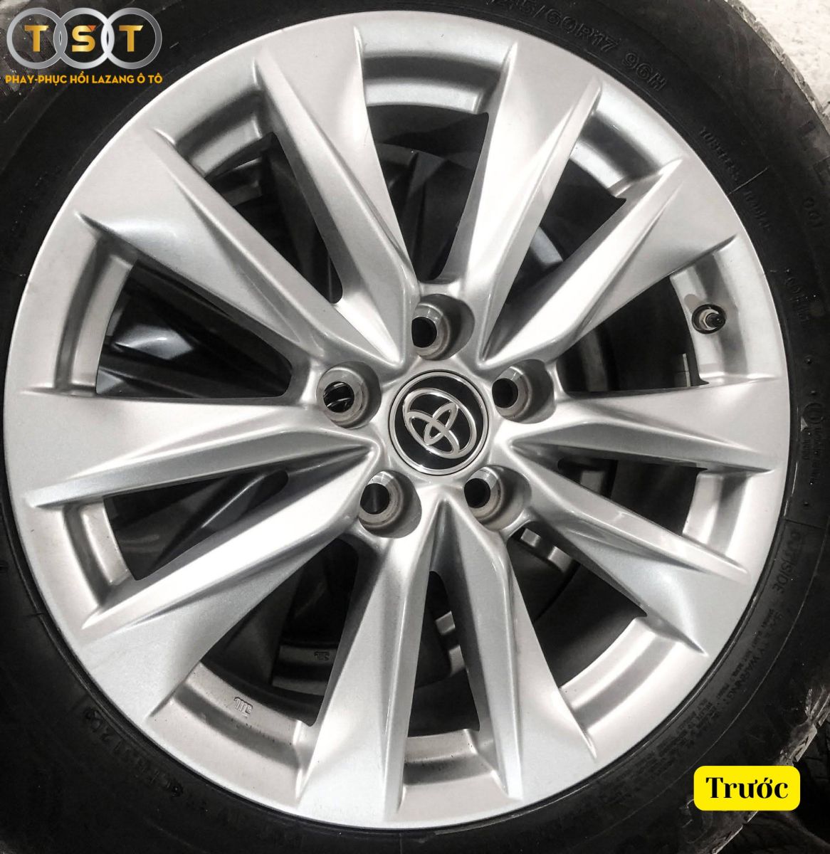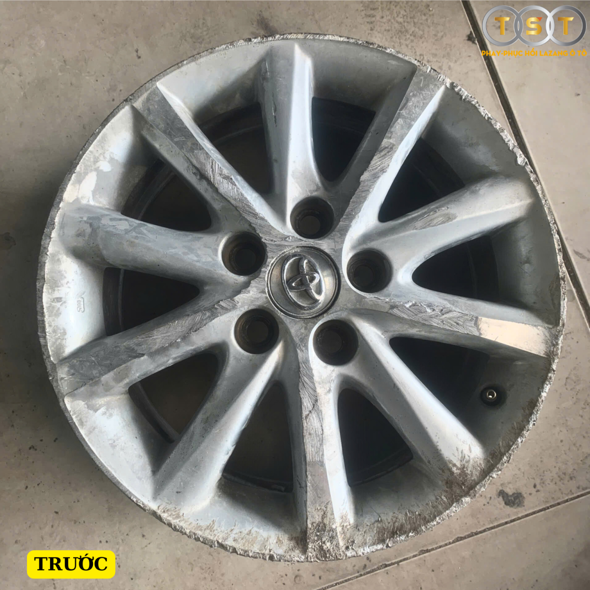 Phục hồi - sơn màu nhũ bạc cho lazang Toyota Camry mang đến diện mạo mới sang trọng cho mâm xe.