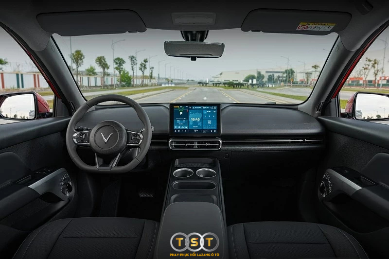 Bước vào khoang lái, VF MPV 7 cho thấy sự tinh chỉnh đáng giá so với bản tiêu chuẩn. Điểm thay đổi lớn nhất là loại bỏ núm xoay cần số đặt tại khu vực yên ngựa, thay bằng hộc chứa đồ hình oval. Cần số được chuyển lên phía sau vô-lăng, giúp khoang lái gọn gàng và hiện đại hơn.