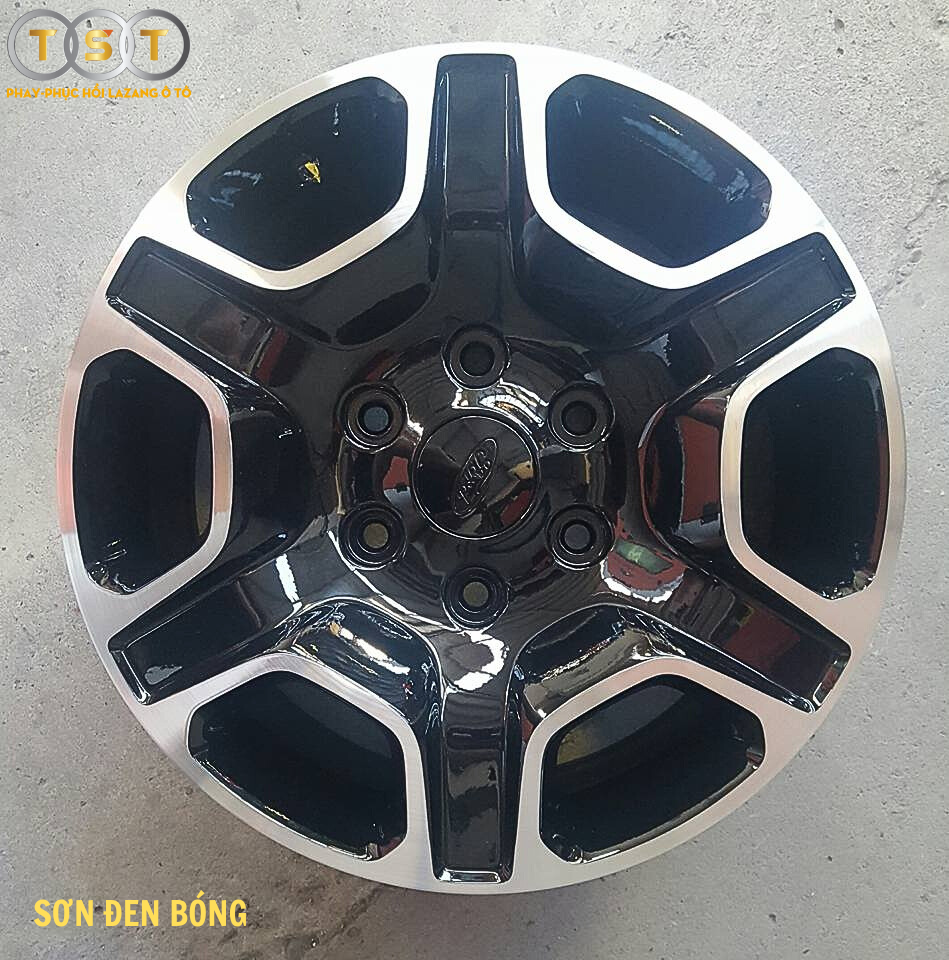 Lazang Ford Ranger trước và sau khi sử dụng dịch vụ sơn đen bóng, kết hợp phay CNC.